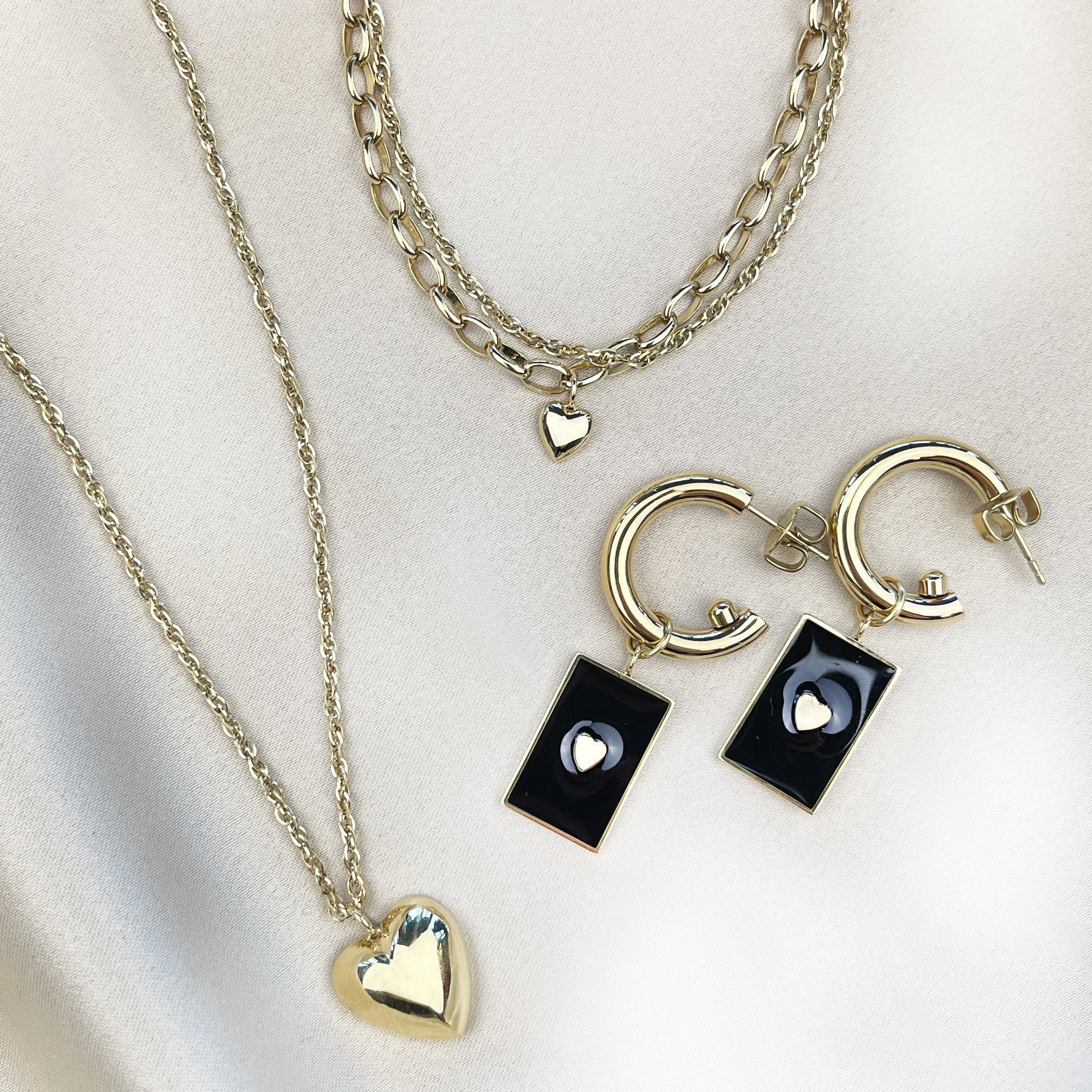 Looking for that final touch to elevate your outfit? Look no further. These Essentielle Black Rectangular Charm Hoop Earrings in gold will complete any outfit. Whether you're going to a party or a brunch, these golden earrings will make you shine. The gold hoop earrings for women carry a delicate black rectangular charm with a tiny gold heart in the middle. Combine these earrings with other CLUSE jewellery for women for a more is more approach.