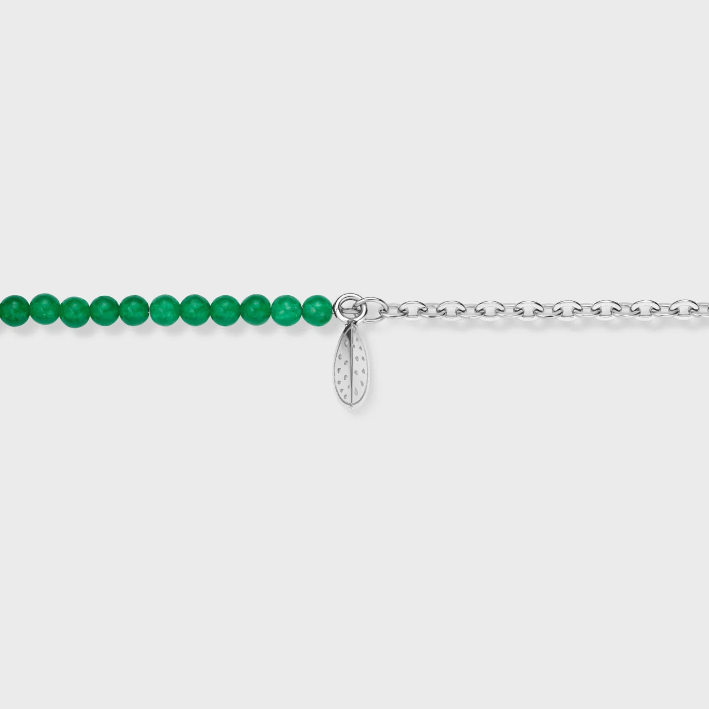 Essentielle Green Beads Watermelon Charm Necklace, Silver Colour