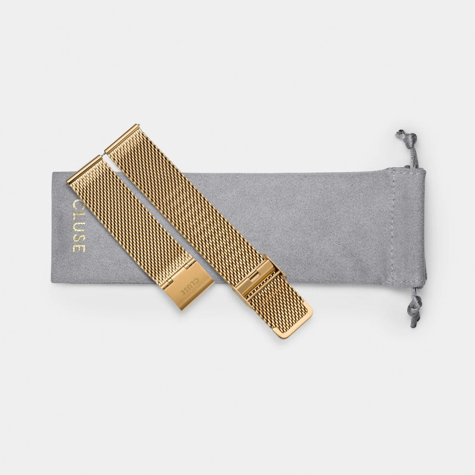 High quality gold stainless steel mesh strap (20 mm width). Equipped with an easy click on/off system to combine with any of our CLUSE watches fitting 20 mm straps.